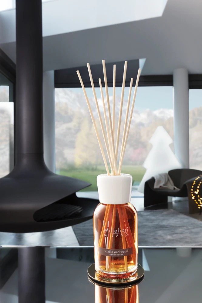 Il diffusore di aromi Millefiori Milano in Vaniglia Naturale e Legno è un diffusore a bastoncini da 250 ml che garantisce una diffusione continua del profumo fino a sette mesi. Questo elegante contenitore in vetro contiene oli profumati naturali che si diffondono attraverso i bastoncini di canna, creando un aroma sottile e persistente negli ambienti domestici. Il profilo olfattivo combina note dolci di vaniglia con caldi toni legnosi, caratterizzato da note di testa di arancia, bergamotto, petitgrain e gelsomino, note di cuore di semi di carota e boccioli di vaniglia, e note di fondo di legno di cedro, ebano, sandalo, malto tostato e iris. Questa composizione aromatica sofisticata crea un’atmosfera accogliente che ricorda la vaniglia dolce intrecciata con il calore delle note legnose di base. Il diffusore funziona senza elettricità o calore, rappresentando un’opzione sicura ed efficiente dal punto di vista energetico per la diffusione continua della fragranza. Presentato in una scatola nera di alta qualità, questo diffusore offre un elemento decorativo discreto adatto a vari stili di interni. La capacità di 250 ml garantisce una durata prolungata della fragranza, rendendolo una scelta pratica per mantenere livelli di profumo costanti in stanze di medie e grandi dimensioni. Gli oli profumati naturali sono progettati per diffondersi gradualmente, assicurando che l’aroma rimanga sottile piuttosto che invasivo. Questo sistema di diffusione a bastoncini non richiede manutenzione oltre al capovolgimento occasionale dei bastoncini per rinfrescare l’intensità del profumo. Il contenitore in vetro presenta un design minimalista che si abbina sia ad arredi moderni che tradizionali. La combinazione di vaniglia e legno crea un’atmosfera confortevole e calda ideale per soggiorni, camere da letto e ingressi. Questo prodotto rientra nella categoria dei deodoranti per ambienti non elettrici e rappresenta l’impegno del marchio Millefiori Milano verso esperienze profumate di qualità. Il profilo olfattivo unisex lo rende adatto a varie preferenze e spazi, offrendo un’alternativa sofisticata ai metodi convenzionali di profumazione ambientale.