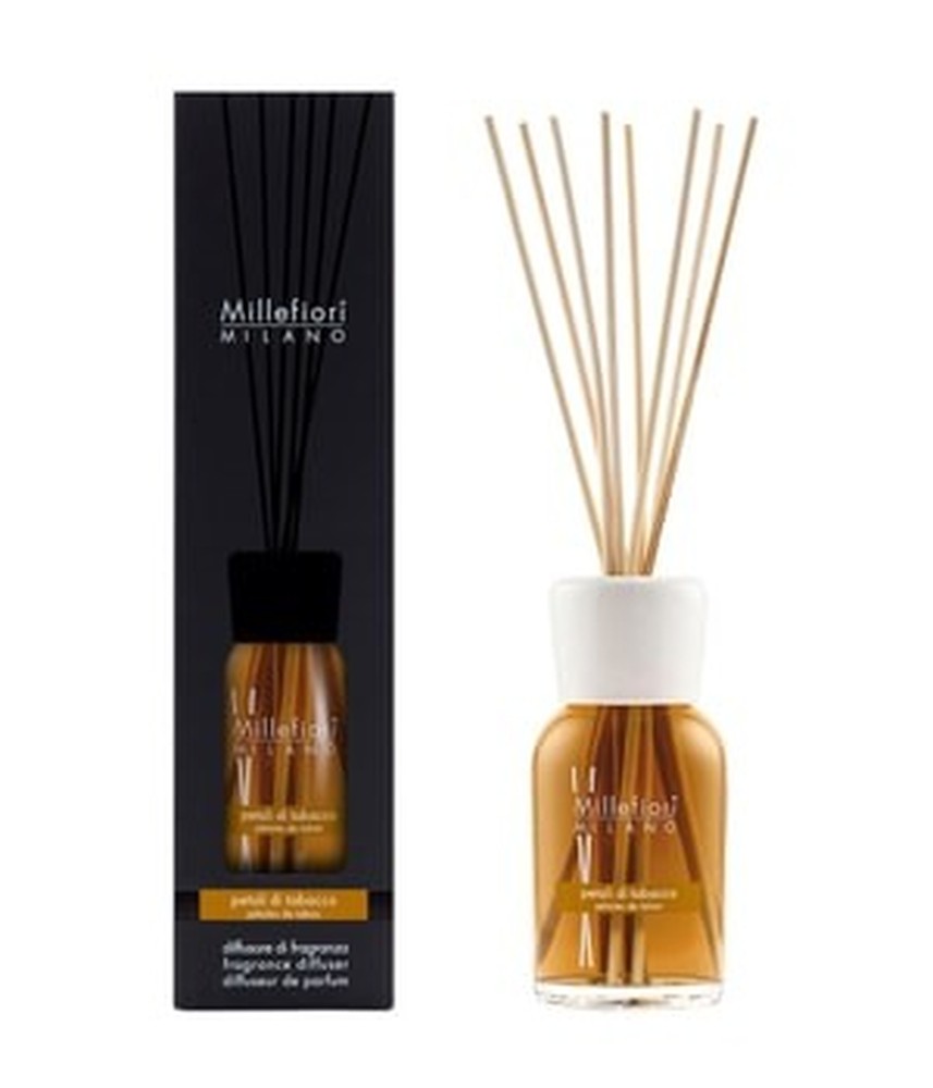 Il diffusore di aromi Millefiori Milano in Tobacco Spices è un deodorante per ambienti non elettrico progettato per arricchire gli spazi interni con una fragranza calda e speziata. Questo diffusore in vetro da 250 ml rilascia un profumo sofisticato ispirato alle foglie di tabacco e alle spezie aromatiche, che evolve con note morbide di vaniglia e cioccolato, arricchite da sottili sfumature legnose e frutta secca per una base raffinata. Le note olfattive includono note di testa di foglie di tabacco e accenti speziati, note di cuore di vaniglia, cioccolato, fava tonka e fiore di tabacco, e note di fondo di frutta secca e legno. Garantisce una diffusione continua della fragranza fino a cinque mesi, utilizzando bastoncini di incenso di alta qualità per un metodo semplice e sicuro di mantenere un’atmosfera piacevole. Il prodotto è presentato in un elegante contenitore in vetro marrone, risultando adatto per regali e per l’utilizzo in vari ambienti come case o uffici. Con un’appeal unisex per adulti, si concentra su durabilità e prestazioni affidabili senza necessità di elettricità, assicurando una qualità dell’aroma di lunga durata.