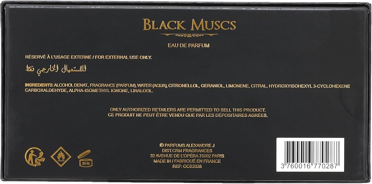 Alexandre J Black Muscs Eau de Parfum è una fragranza unisex presentata in una bottiglia spray da 100 ml con un design nero sofisticato. Questo eau de parfum si apre con vibranti note di testa di bergamotto e agrumi, transita verso un cuore di violetta, patchouli e rosa, e si assesta su una base calda di ambra e muschio per una fragranza bilanciata e di lunga durata. Realizzato con ingredienti di alta qualità, offre prestazioni affidabili adatte all’uso quotidiano o per occasioni speciali. La fragranza è progettata per adulti, fornendo un aroma versatile che attrae un’ampia gamma di preferenze. La sua dimensione compatta di 100 ml la rende conveniente per viaggi e conservazione, garantendo un’applicazione uniforme con il meccanismo spray incluso. Questo prodotto enfatizza durabilità e precisione nella sua formulazione, soddisfacendo le aspettative per un articolo di cura personale premium senza affermazioni esagerate.