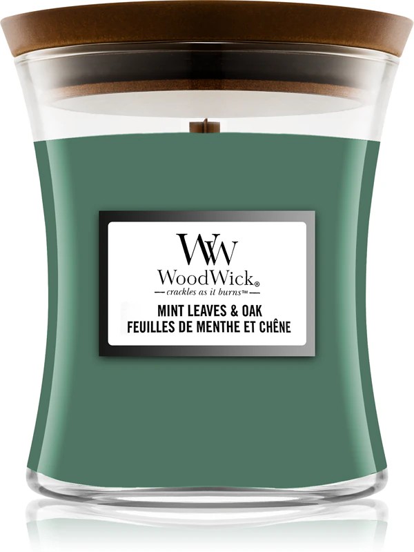 La candela profumata Woodwick Mint Leaves & Oak in formato medio offre 275 grammi di cera di alta qualità racchiusa in un contenitore di vetro resistente. Questo prodotto presenta uno stoppino in legno distintivo che produce un delicato crepitio simile a quello di un fuoco, arricchendo l’esperienza sensoriale. Il profumo combina fresche foglie di menta con note legnose di quercia affumicata e cipresso, integrate da note di testa di bergamotto e pigmento, note di cuore di muschio verde e una base di legno di aquila, legno spiaggiato e ambra. Progettata per una combustione uniforme, lo stoppino brevettato garantisce prestazioni costanti e una diffusione duratura del profumo. Adatta per creare un’atmosfera raffinata in qualsiasi ambiente, è ideale per l’uso adulto in contesti di arredamento domestico. Per un utilizzo ottimale, lasciare che la candela raggiunga la temperatura ambiente prima dell’accensione, assicurarsi che l’intera superficie della cera si sciolga formando uno strato uniforme per il massimo rilascio del profumo e tagliare sempre lo stoppino a circa 5 millimetri prima di ogni utilizzo. Posizionare su una superficie piana e resistente al calore lontano da correnti d’aria, materiali infiammabili e fonti di calore, e non spostare mai la candela mentre è accesa o prima che la cera si sia solidificata. Smaltire in modo responsabile quando rimangono circa 5-10 millimetri di cera.