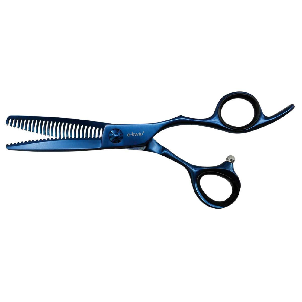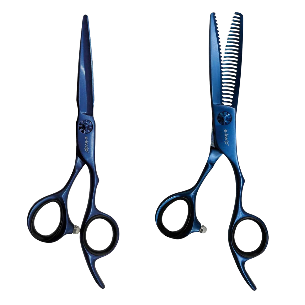 Il set professionale per taglio capelli E-Kwip Neptune comprende una forbice da taglio da 14,6 cm e una forbice sfoltente da 15,2 cm, entrambe realizzate in acciaio giapponese premium 440-C con rivestimento in titanio blu per una maggiore durata e resistenza alla corrosione. Queste forbici di livello professionale presentano appoggi per le dita in stile giapponese per un controllo ottimale e maniglie ergonomiche progettate con una distribuzione bilanciata del peso per ridurre l’affaticamento del polso durante l’uso prolungato. Le lame affilate con precisione utilizzano la tecnica di affilatura a spada per tagli puliti e precisi, mentre il disegno dentellato specializzato sulle forbici sfoltenti crea transizioni fluide e senza soluzione di continuità nella texture dei capelli. La combinazione di materiali di alta qualità e design accurato rende queste forbici adatte all’uso professionale quotidiano nei saloni o per la cura avanzata dei capelli a casa. Ogni forbice mantiene l’affilatura attraverso ripetuti utilizzi e può essere affilata professionalmente quando necessario. Il rivestimento in titanio blu non solo fornisce una distinzione visiva ma aggiunge anche uno strato extra di protezione contro l’usura e i fattori ambientali. Questo set rappresenta il modello successore della serie E-Kwip, che migliora i progetti precedenti con ergonomia e prestazioni di taglio ottimizzate per professionisti della parrucchieria ed appassionati che cercano strumenti di taglio precisi e affidabili.