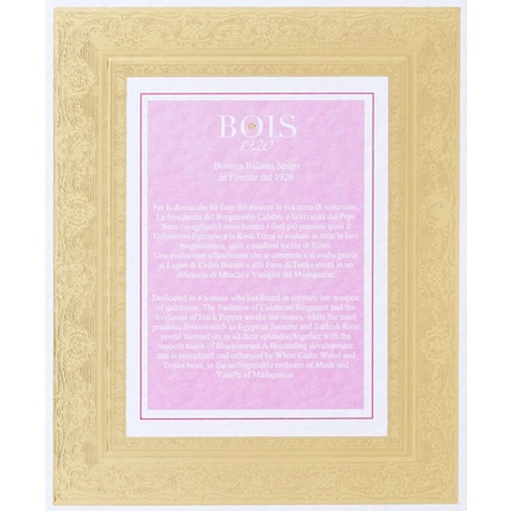 Bois 1920 Notturno Fiorentino è un’eau de parfum sofisticata concepita per individui esigenti, che incarna l’eleganza senza tempo di Firenze in una bottiglia da 100 ml. La fragranza si apre con vibranti note di testa di bergamotto e neroli, sfocia in un cuore di gelsomino e rosa, e si posa su una calda base di sandalo e ambra per un’impronta persistente. Realizzata con ingredienti di alta qualità, offre una composizione bilanciata adatta per la sera e le occasioni speciali, garantendo un profumo che si evolve con grazia nel tempo. La bottiglia presenta un design classico con tappo sicuro, assicurando un’applicazione e una conservazione facili. Ideale per chi apprezza aromi raffinati e complessi, questa eau de parfum fornisce prestazioni costanti senza essere invadente, rendendola una scelta affidabile per l’uso quotidiano o come regalo. Il volume di 100 ml garantisce una scorta abbondante per un prolungato piacere, sostenuta dalla tradizione di Bois 1920 dedicata alla profumeria artigianale.
