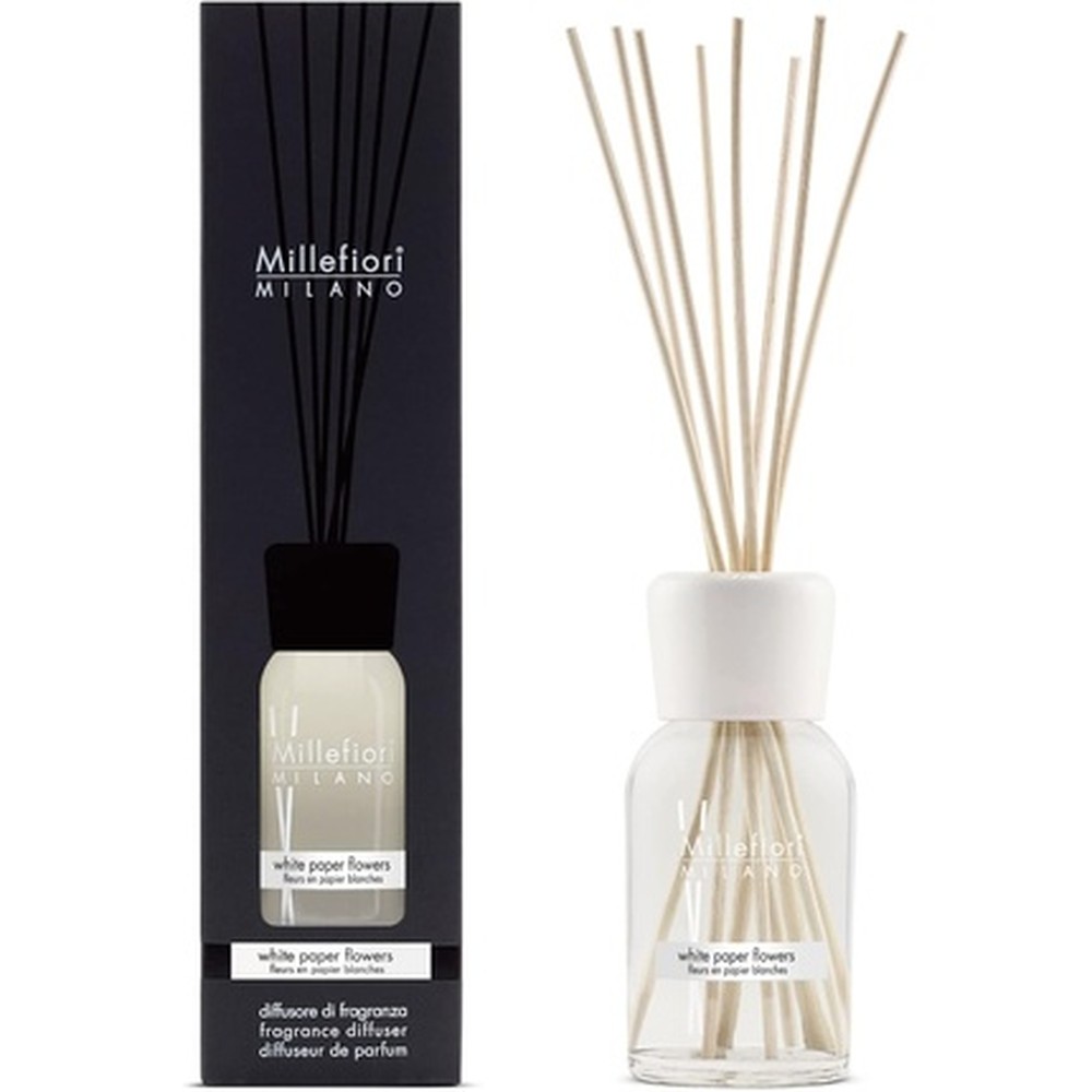 Il Diffusore di Profumo Millefiori Milano White Paper Flowers è un deodorante per ambienti non elettrico progettato per fornire una fragranza floreale continua fino a 6-7 mesi. Contiene 100 ml di olio profumato e include bastoncini in legno di balsa per una diffusione semplice, alloggiato in una bottiglia di vetro riutilizzabile. La fragranza White Paper Flowers combina note floreali con accenti legnosi e di tè, strutturata in tre strati: note di testa di bergamotto, cardamomo e peonia, note di cuore di fresia e fiori di tè, e note di fondo di violette e fava tonka. Questo prodotto fa parte della Collezione Milano, che enfatizza qualità e longevità. Con un’altezza totale di 31 cm, è adatto per vari spazi interni come soggiorni, camere da letto o uffici. La confezione è una scatola nera premium, rendendolo un’opzione regalo appropriata. Realizzato in vetro e materiali naturali, offre un modo sicuro e diretto per mantenere un’atmosfera piacevole. Ideale per adulti, supporta un’appeal unisex e si concentra su prestazioni affidabili senza necessità di elettricità o sostituzioni frequenti.