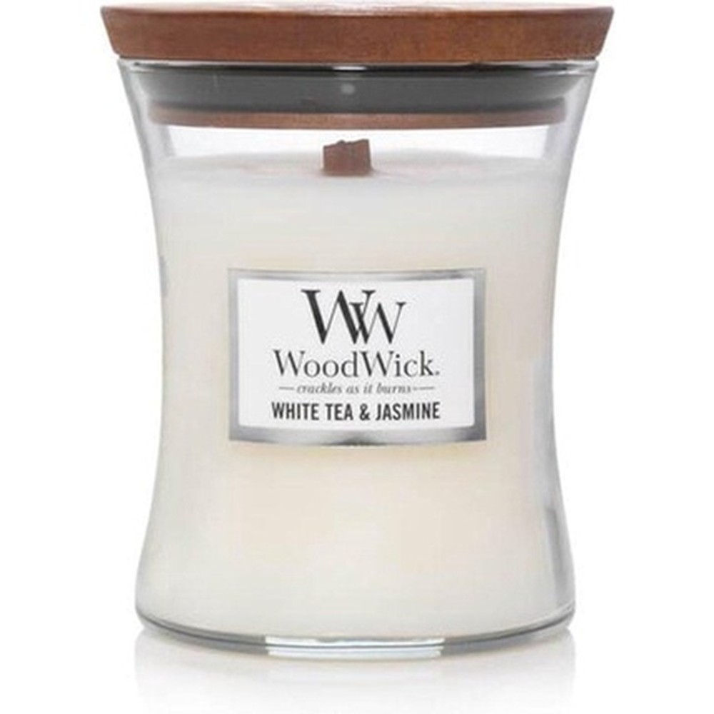 La candela profumata Woodwick in White Tea & Jasmine offre un aroma fresco e floreale, creando un’atmosfera rilassante con la sua miscela di note di tè bianco e gelsomino. Questa candela è realizzata in cera di soia di alta qualità e presenta uno stoppino in legno che produce un delicato crepitio durante la combustione, migliorando l’ambientazione. Ha un tempo di combustione di circa 60 ore ed è presentata in un elegante vaso di vetro con coperchio in legno, con un diametro di 9,9 cm e un’altezza di 11,4 cm, per un peso di 275 g. Il design unisex e il colore bianco neutro la rendono adatta a vari stili di arredamento domestico, concentrandosi su durata e prestazioni affidabili per l’uso quotidiano.